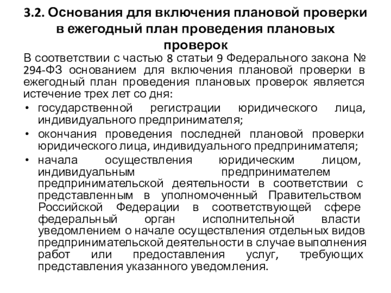 Слайд 173.2. Основания для включения плановой проверки в ежегодный план проведения