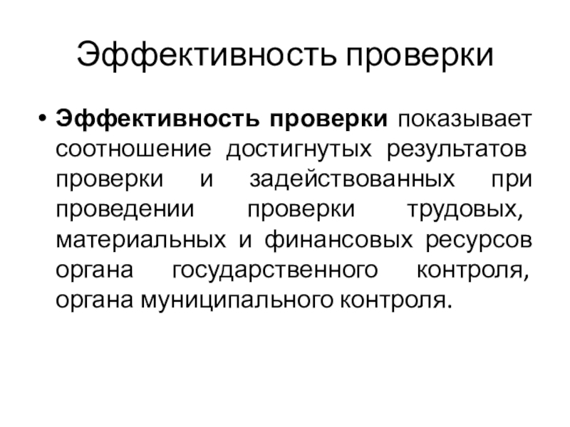 Эффективность проверки показывает соотношение достигнутых результатов проверки и задействованных