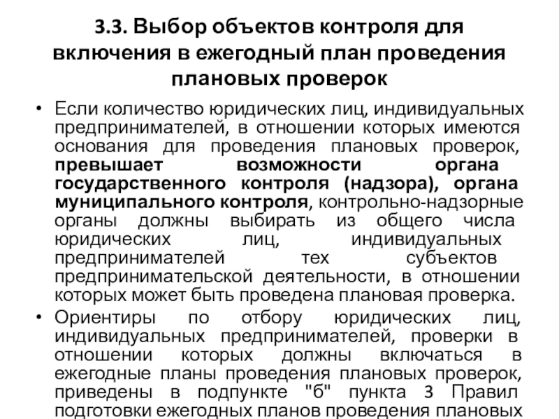 Слайд 193.3. Выбор объектов контроля для включения в ежегодный план проведения