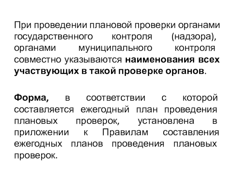 Слайд 30При проведении плановой проверки органами государственного контроля (надзора), органами муниципального