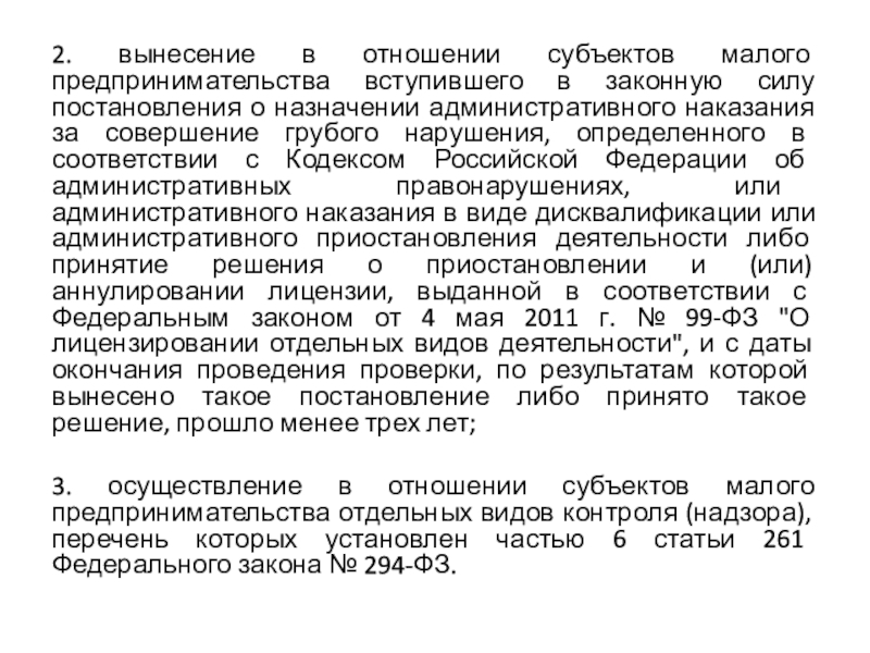 Слайд 252. вынесение в отношении субъектов малого предпринимательства вступившего в законную