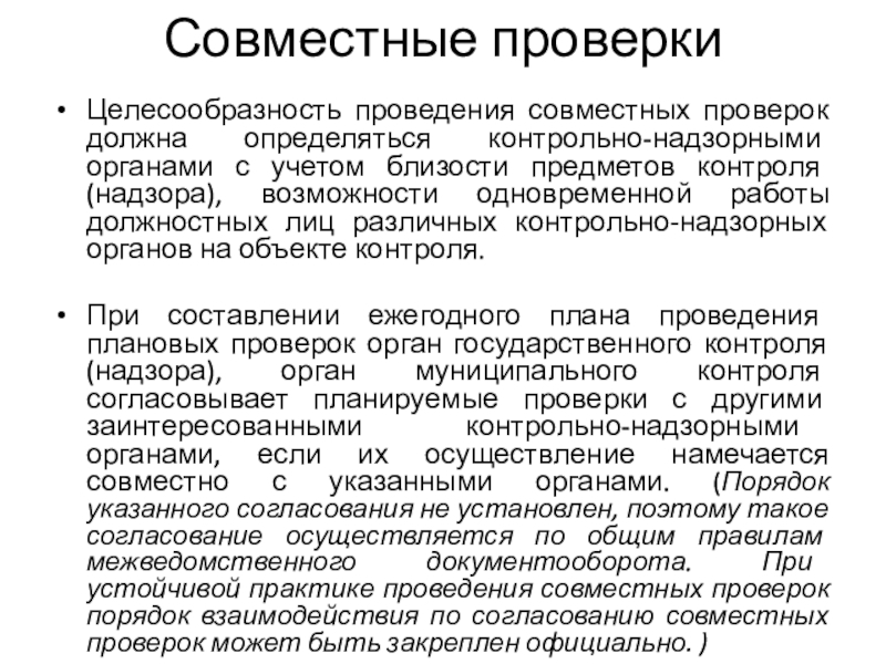 Целесообразность проведения совместных проверок должна определяться контрольно-надзорными органами с