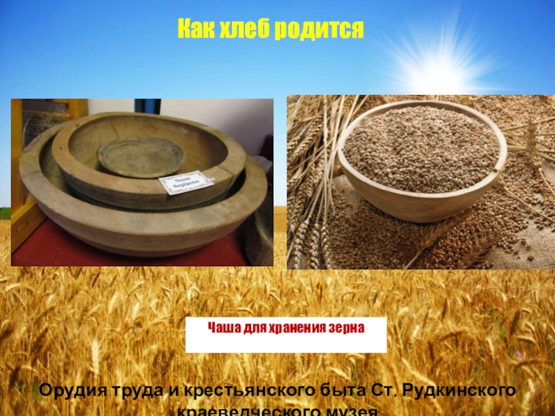 Как хлеб родитсяОрудия труда и крестьянского быта Ст. Рудкинского краеведческого музеяЧаша для хранения зерна