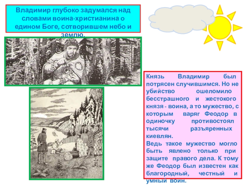 Владимир глубоко задумался над словами воина-христианина о едином Боге, сотворившем небо и землю.
