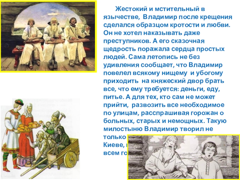Слайд 17 Жестокий и мстительный в язычестве, Владимир после крещения сделался образцом