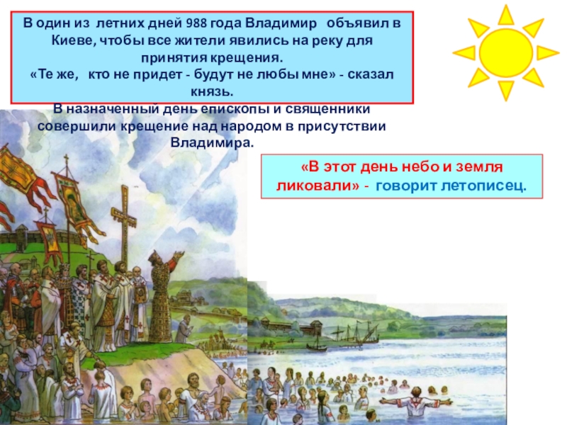 Слайд 15В один из летних дней 988 года Владимир объявил