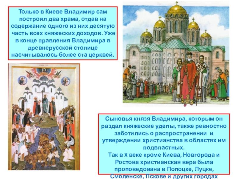 Слайд 22Только в Киеве Владимир сам построил два храма, отдав на