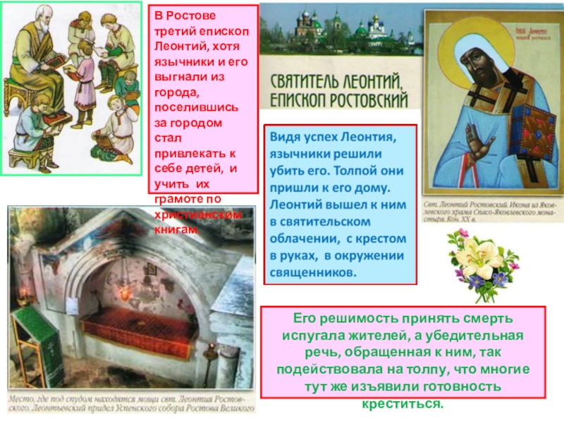 Слайд 21В Ростове третий епископ Леонтий, хотя язычники и его выгнали