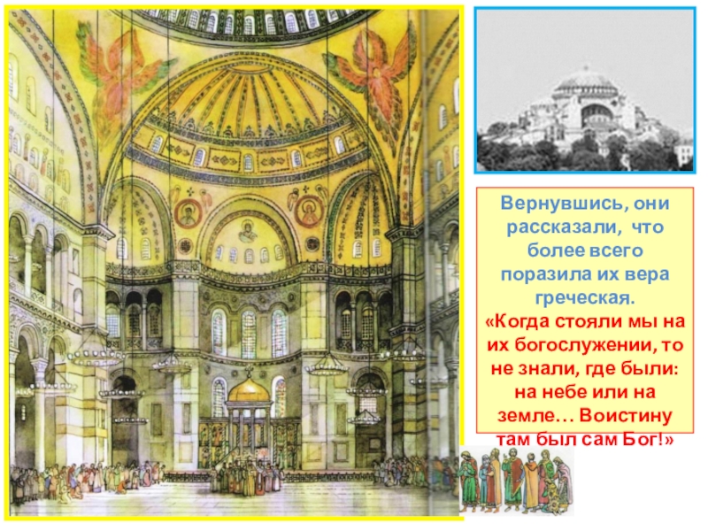 Слайд 10Вернувшись, они рассказали, что более всего поразила их вера греческая.