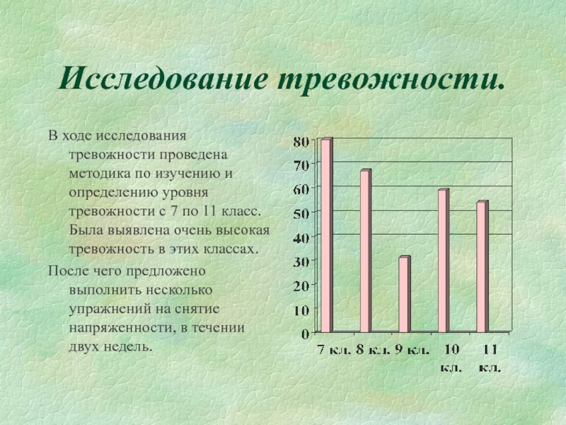 определению уровня тревожности с 7 по 11 класс. Была выявлена