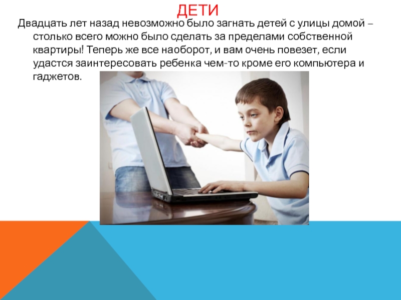 Теперь же все наоборот, и вам очень повезет, если удастся заинтересовать ребенка чем-то кроме его компьютера и гаджетов.