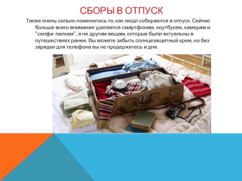 и "селфи-палкам", а не другим вещам, которые были актуальны в путешествиях ранее. Вы можете забыть солнцезащитный крем, но без зарядки для телефона вы не продержитесь и дня.