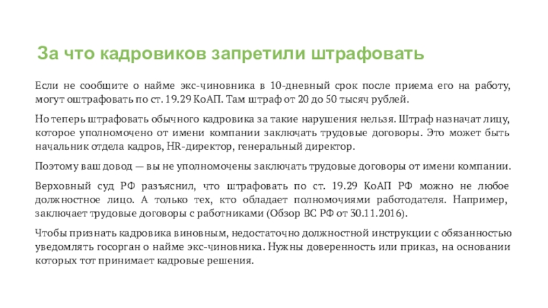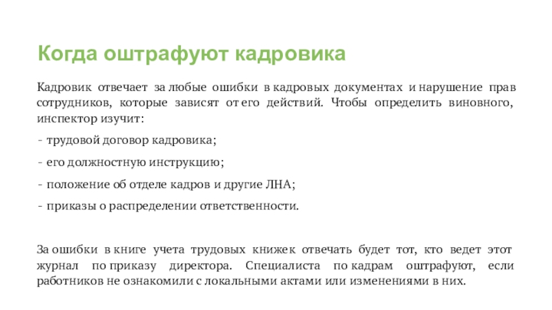 Слайд 10За что кадровиков запретили штрафовать