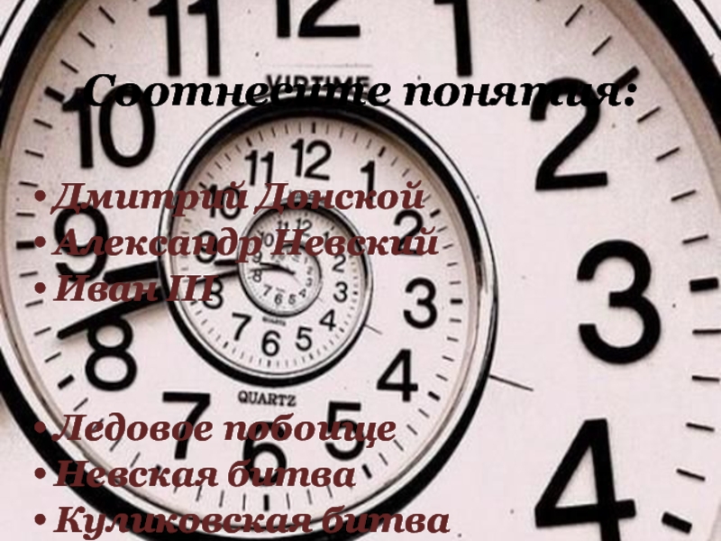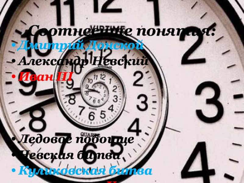 Соотнесите понятия:Дмитрий ДонскойАлександр НевскийИван IIIЛедовое побоищеНевская битваКуликовская битва«стояние на Угре»