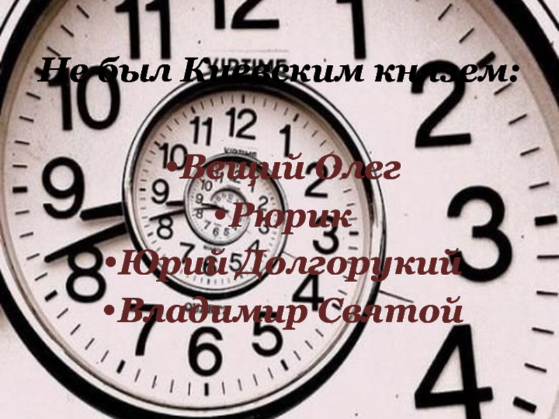 Не был Киевским князем:Вещий Олег Рюрик  Юрий Долгорукий  Владимир Святой