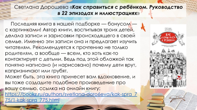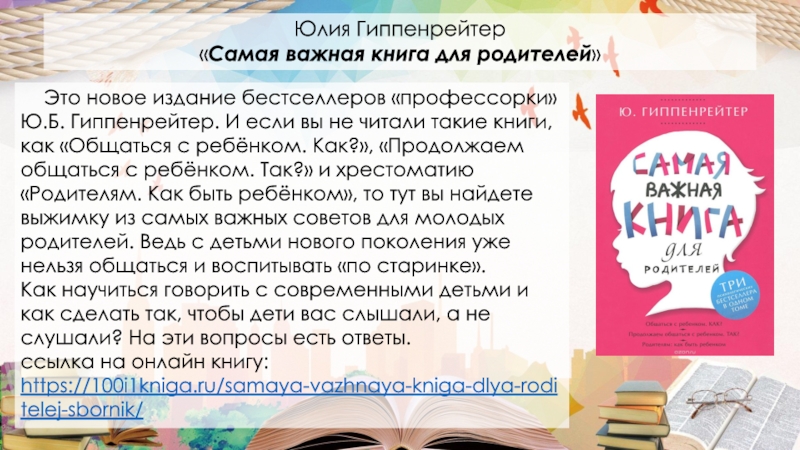 тяжёлый труд, в котором пригодятся помощники. Конечно, это могут быть родители, друзья или знакомые. Но обычно никто из них не является признанным экспертом в детской психологии (хотя они могут считать обратное). Поэтому, чтобы избежать бесполезных советов, лучше обратиться к профессионалам. То есть к психологам и врачам, которые специально для вас пишут полезные книги с разбором всевозможных сложных вопросов.ИБЦ МБОУ Лицей № 25 г. Димитровград подготовил для вас 10 книг по воспитанию, которые рекомендовано прочесть всем родителям.