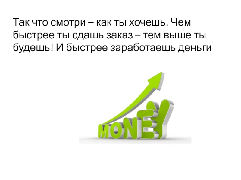 сдашь заказ – тем выше ты будешь! И быстрее заработаешь