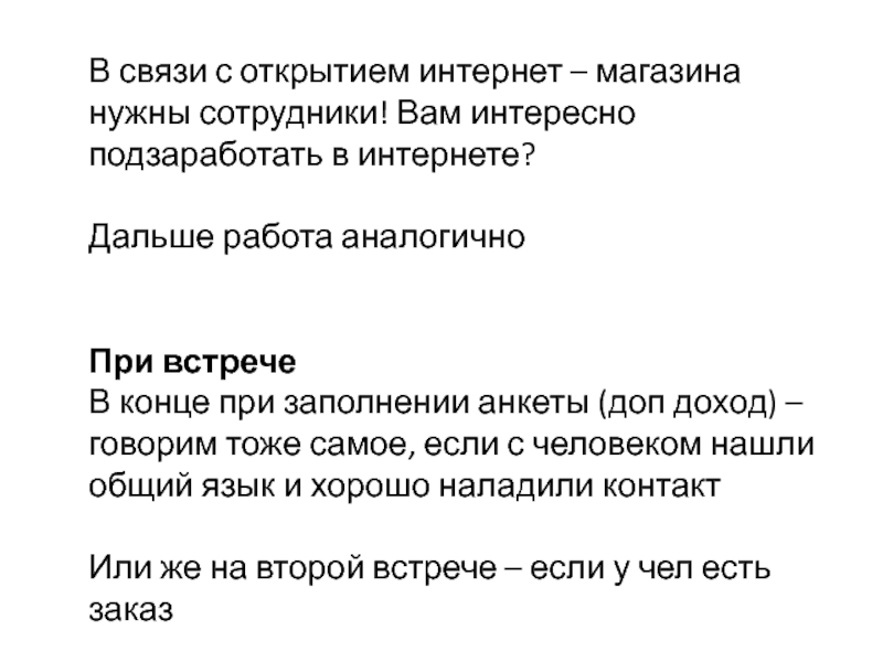 анкеты (доп доход) – говорим тоже самое, если с человеком нашли общий язык и хорошо наладили контакт