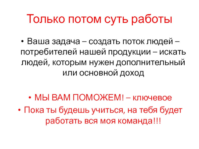 потребителей нашей продукции – искать людей, которым нужен дополнительный или