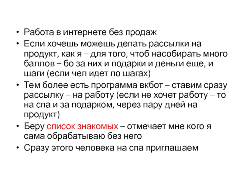 Тем более есть программа вкбот – ставим сразу рассылку – на работу (если не хочет работу – то на спа и за подарком, через пару дней на продукт)