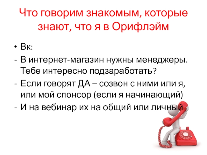 Слайд 8Что говорим знакомым, которые знают, что я в Орифлэйм