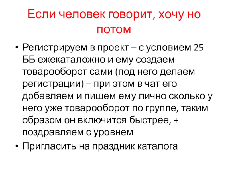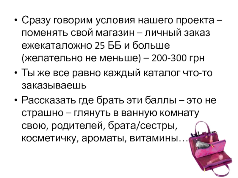 условием 25 ББ ежекаталожно и ему создаем товарооборот сами (под