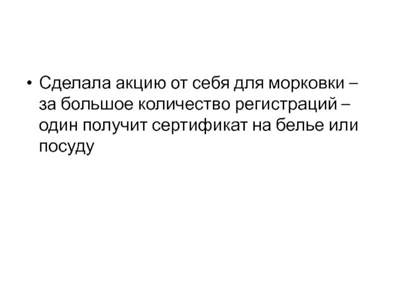 Слайд 18Сделала акцию от себя для морковки – за большое количество
