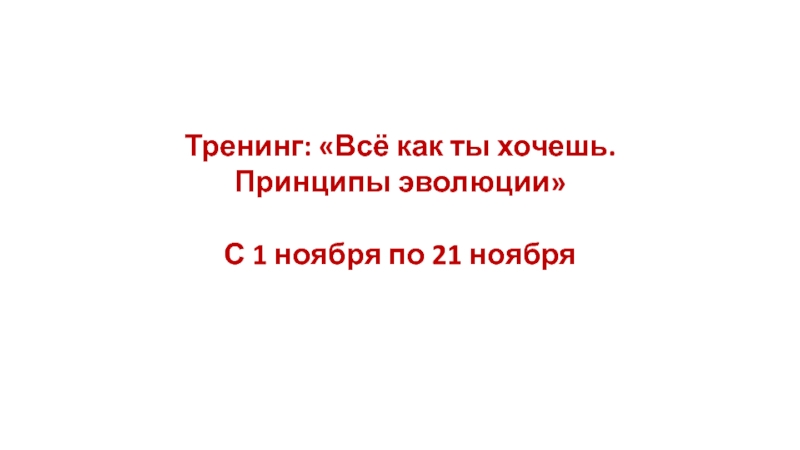 Тренинг: «Всё как ты хочешь. Принципы эволюции»С 1 ноября по 21 ноября