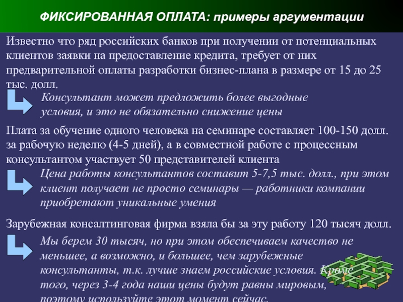Цена работы консультантов составит 5-7,5 тыс. долл., при этом клиент получает не просто семинары — работники компании приобретают уникальные умения