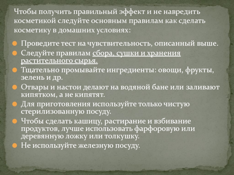 Слайд 22Сделать косметику в домашних условиях, которая состоит из натурального природного