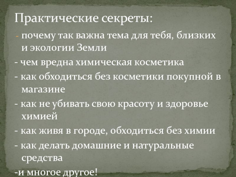Слайд 1Как заменить всю химическую косметику НАТУРАЛЬНОЙ даже в городе?
