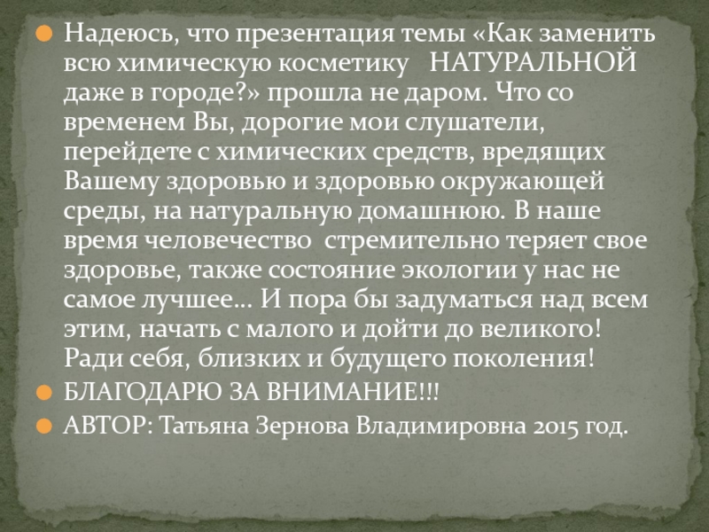 Слайд 40Надеюсь, что презентация темы «Как заменить всю химическую косметику