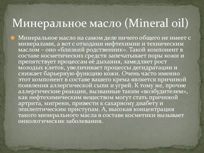Слайд 6Минеральное масло на самом деле ничего общего не имеет с