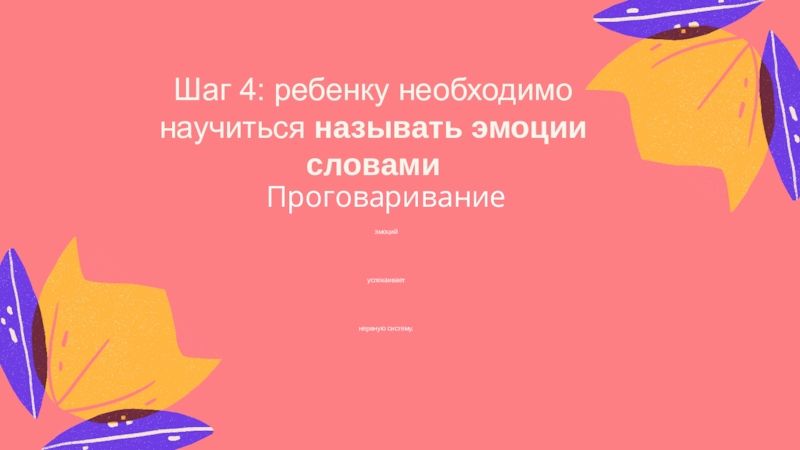 Шаг 4: ребенку необходимо научиться называть эмоции словамиПроговариваниеэмоцийуспокаиваетнервную систему.
