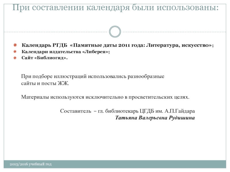 Слайд 171При составлении календаря были использованы:
