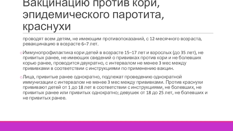 Слайд 10Вакцинацию против кори, эпидемического паротита, краснухи