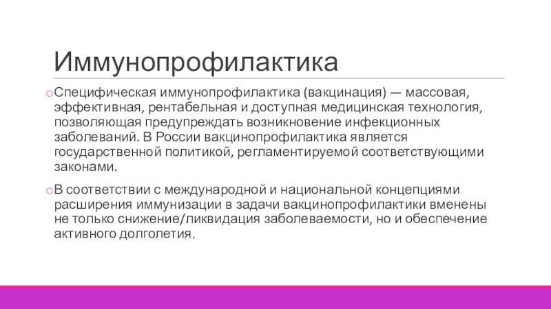 В соответствии с международной и национальной концепциями расширения иммунизации в задачи вакцинопрофилактики вменены не только снижение/ликвидация заболеваемости, но и обеспечение активного долголетия.