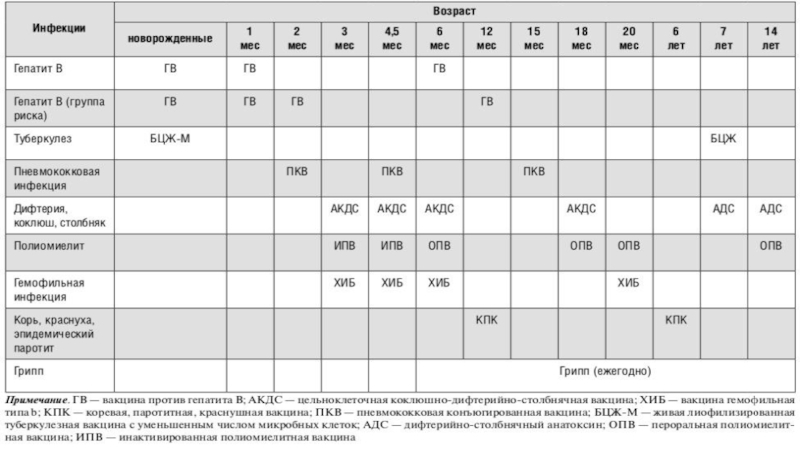 — в 4,5 мес, ревакцинация — в 15 мес).