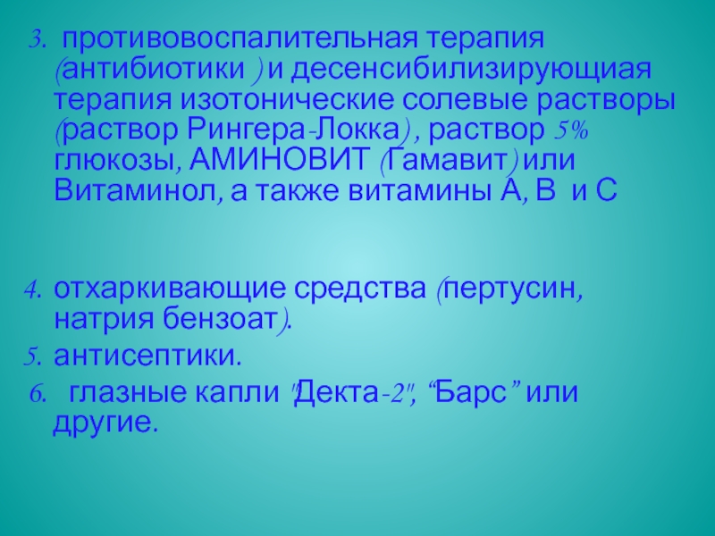 Слайд 253. противовоспалительная терапия (антибиотики ) и десенсибилизирующиая терапия изотонические солевые