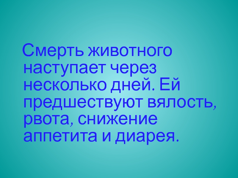 Слайд 17 Смерть животного наступает через несколько дней. Ей предшествуют