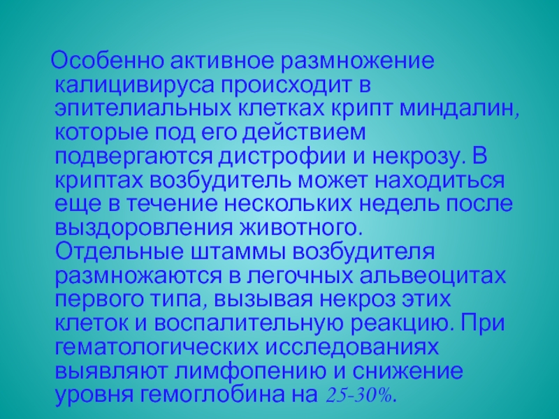 Слайд 10 Особенно активное размножение калицивируса происходит в эпителиальных клетках