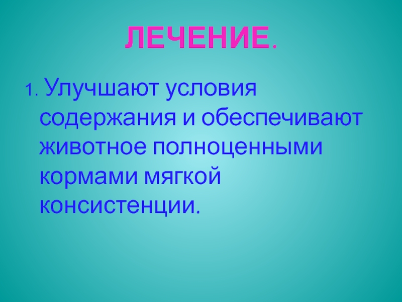 1. Улучшают условия содержания и обеспечивают животное полноценными кормами мягкой