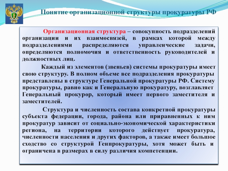 Принципы построения организационных структур органов и организаций прокуратуры РФ