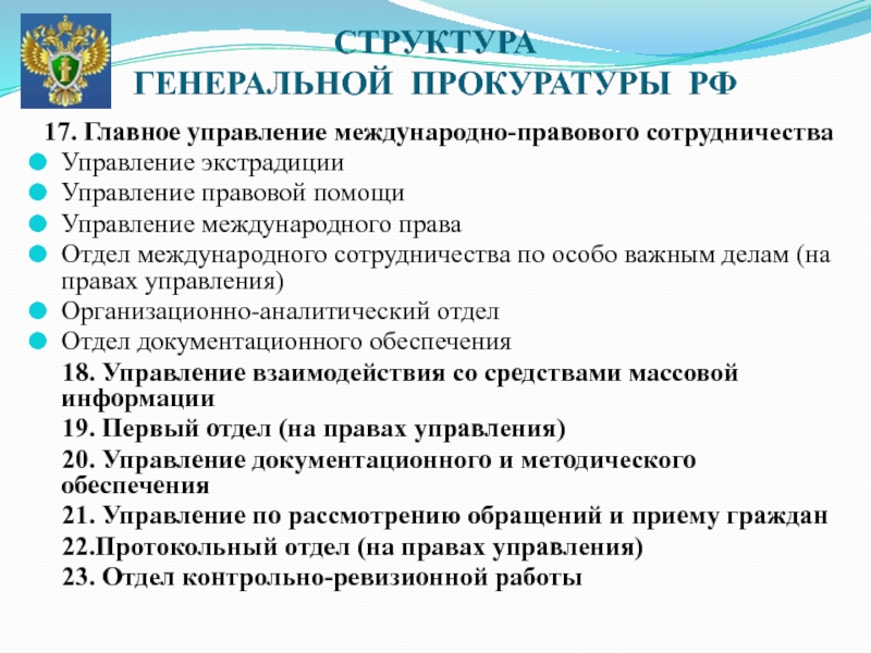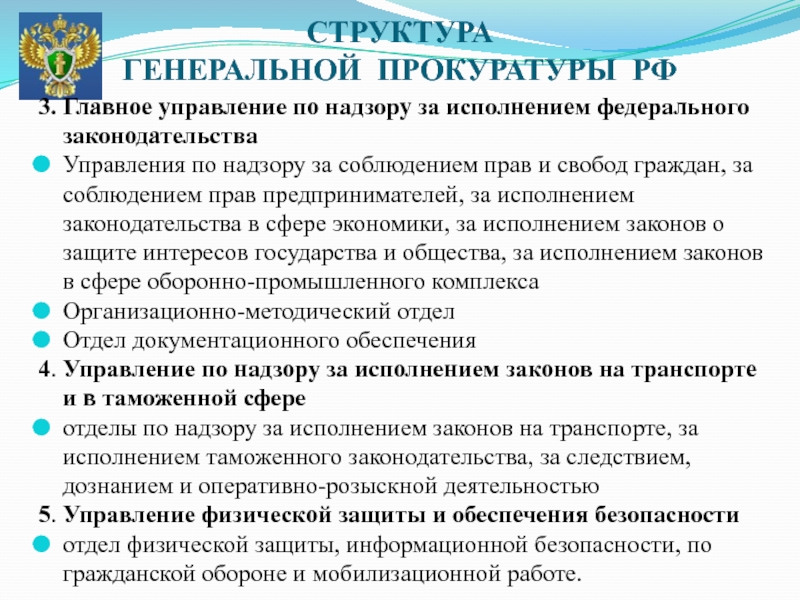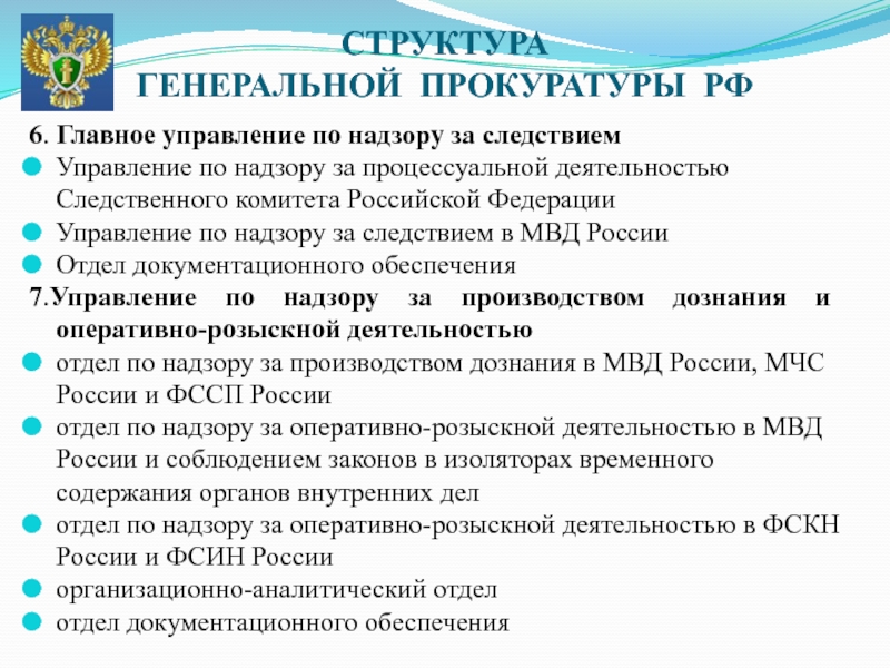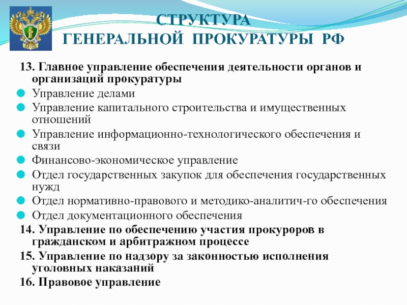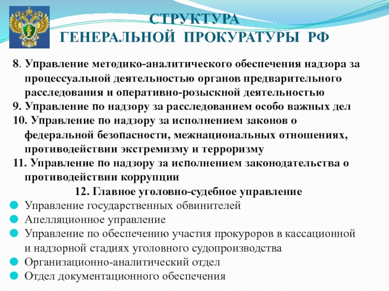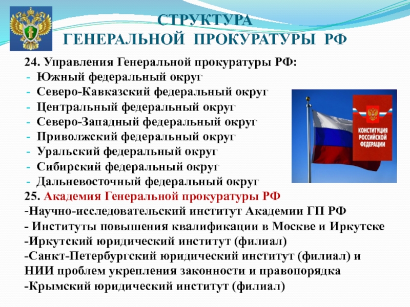 Слайд 12Полномочия Генерального прокурора РФ по руководству системой прокуратуры РФ (ст.