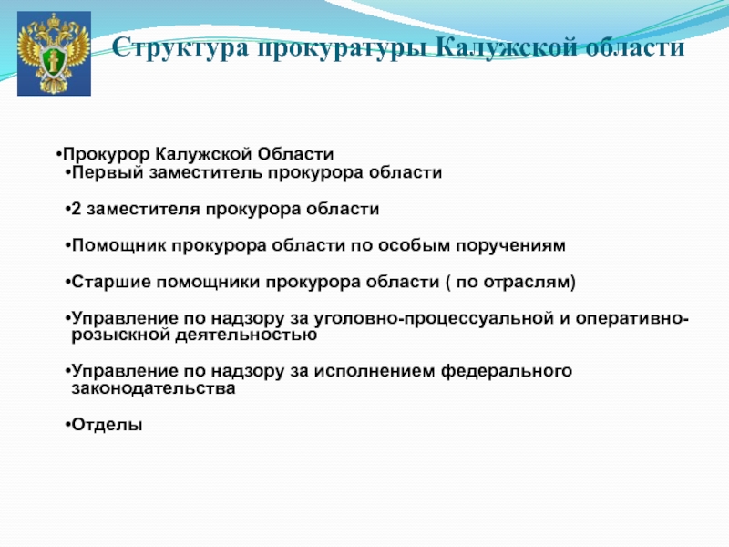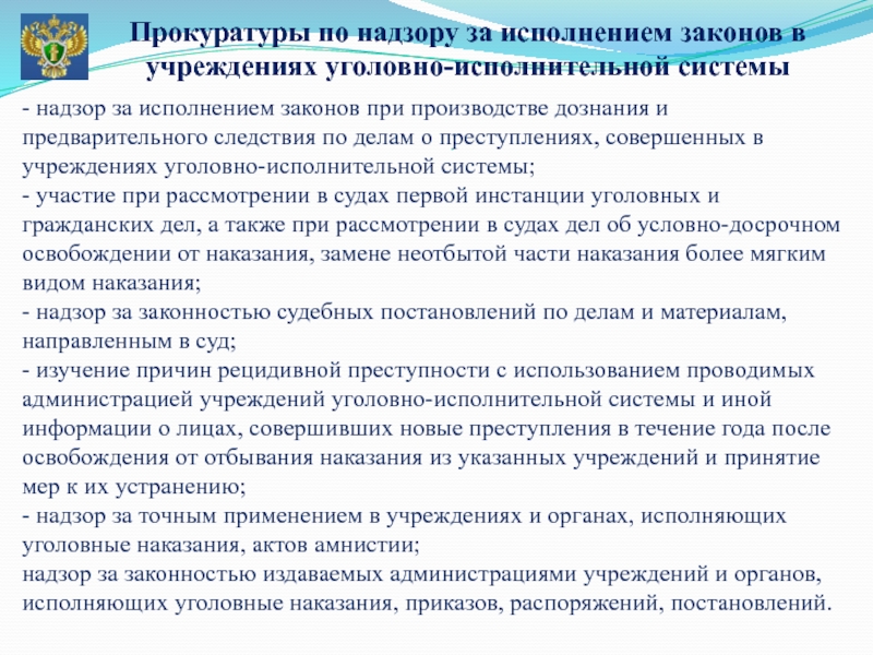 Слайд 38Прокуратуры по надзору за исполнением законов в учреждениях уголовно-исполнительной системы