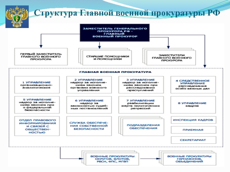 Слайд 32 Систему органов военной прокуратуры составляют: Главная военная прокуратура, военные прокуратуры военных округов,