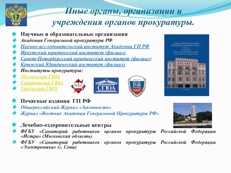 Слайд 39Иные органы, организации и учреждения органов прокуратуры.