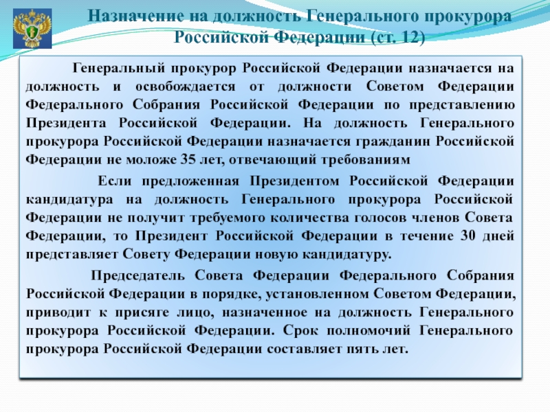 Назначение на должность Генерального прокурора Российской Федерации (ст. 12)