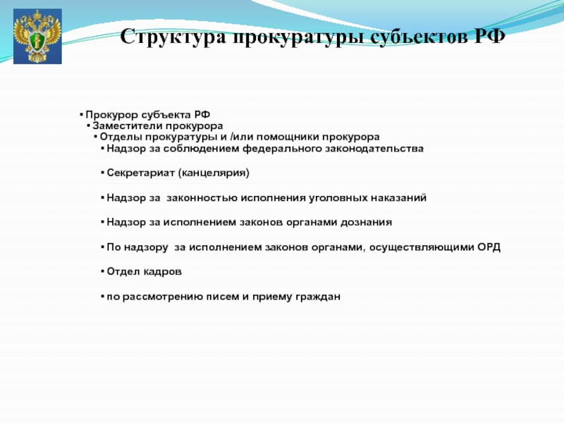 Слайд 41 Прокурор субъекта Российской Федерации назначается на