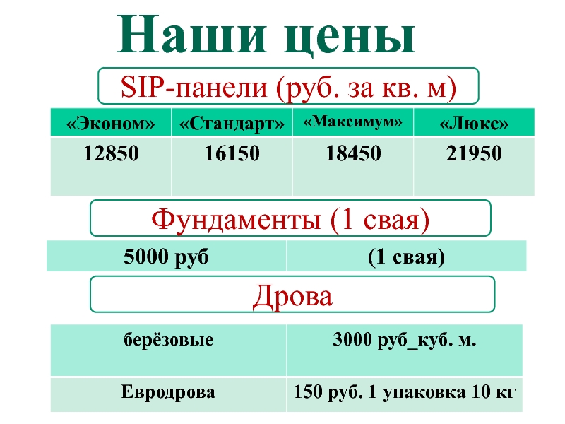 Наши ценыSIP-панели (руб. за кв. м)Фундаменты (1 свая)Дрова